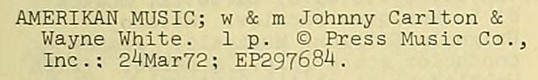Label credits for the writers are J. Carlton – W. White, shown in the US copyright registration as Johnny Carlton & Wayne White. Their full names, listed at rights organisation BMI, are John Warren Carlton (10 compositions) and Harold Wayne White (17).