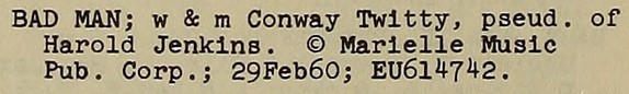 Sessionographies at Praguefrank’s site show two recordings of Bad Man by Conway Twitty: