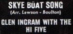 Glen Ingram later sang with Perth band The Clan, recording as Glen Ingram With The Clan for an EP on Clarion that included a further version of Skye Boat Song. They charted with another track on Clarion, Take This Hammer (1967, #12 Perth) [YouTube], a traditional American work song.