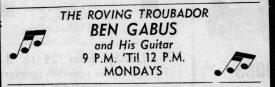 Gabus, born in Galveston, Texas in 1931, lived in Lafayette, Louisiana where he was a regular at the Jury Room Lounge nightspot (in which he appears to have had an interest). He later ran the Ben Gabus Tree Service in Lexington, South Carolina, where he lived for many years until his death there in 2021.