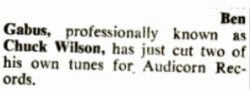 A Billboard note in October 1959 seems to suggest that Gabus was working as Chuck Wilson when he recorded for Audicon but both of his records for Audicon’s Versatile label were as Johnny Yukon.