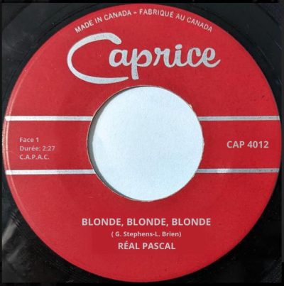 Single on Caprice 4012 by Québécois singer Réal Pascal (b. Réal Laplante) from the small regional city of Thetford Mines, about 240 km north-east of Montreal